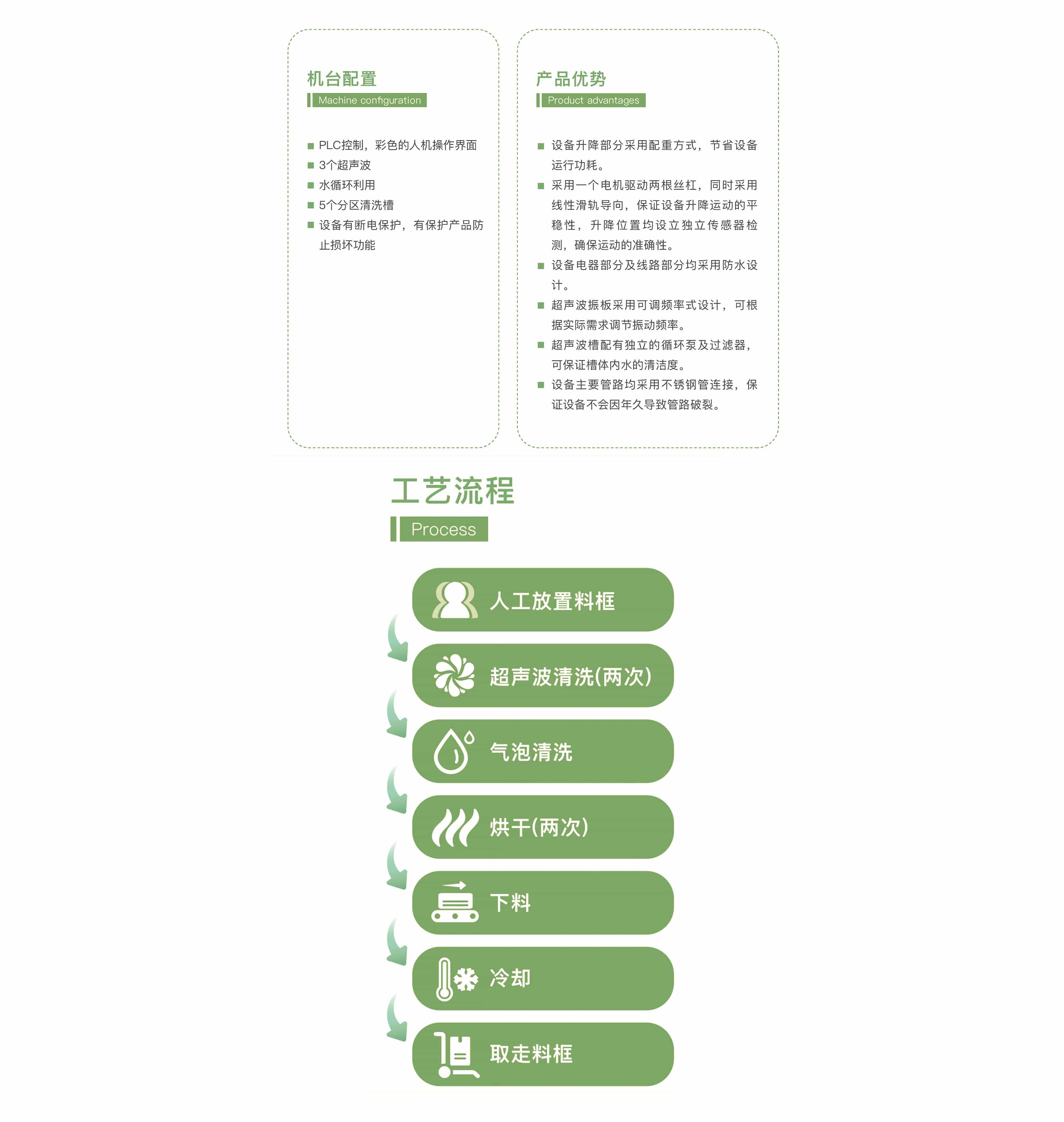 UC7200是全自动料封闭式料盒清洗烘干一体机,用于代替人工清洗方式,对料盒进行自动高精度清洗,是料盒大道清洁的要求。该料盒为铝合金材质,有复杂外形。主要清除的污渍是灰尘。